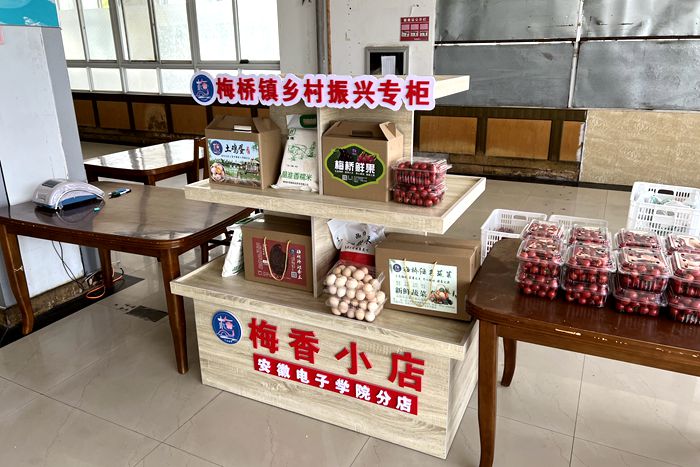 本网讯 “今天的羊角蜜真甜!”“是的,我买了十斤,花费不到40元,比外面的超市卖的便宜,还特新鲜!”“我前几天买的土鸡蛋也很好,我家宝宝特爱吃!”漫步风景如画的电院校园,两位青年教师正开心地分享着自己在“梅香小店”的购物心得。近日,蚌埠市淮上区梅桥镇乡村振兴专柜暨梅香小店在学院三楼教工食堂正式开业,学院教职工足不出校即可购买从梅桥镇田间地头直供的各类新鲜蔬果和特色农副食品。