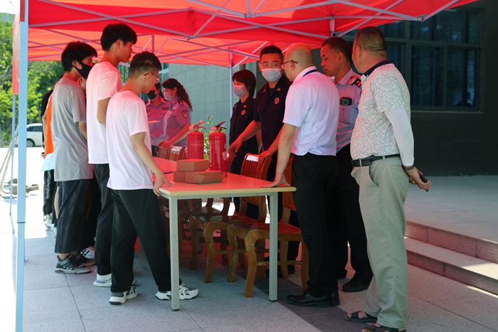 学院党委书记石象斌,党委副书记、院长王国武,副院长马莉莉到现场观摩活动,慰问了前来参与举办活动的消防及公安人员。龙子湖区消防应急救援大队、禁毒大队、龙湖派出所受邀走进校园就分管领域及职能展开介绍并指导相关演练。