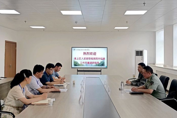 本网讯 6月23上午,淮上区人武部政委胡召雷来我院调研指导秋季征兵工作,学院党委书记石象斌出席调研交流座谈会,淮上区人武部军事科科长徐一峰,学院学生处相关同志参加活动。