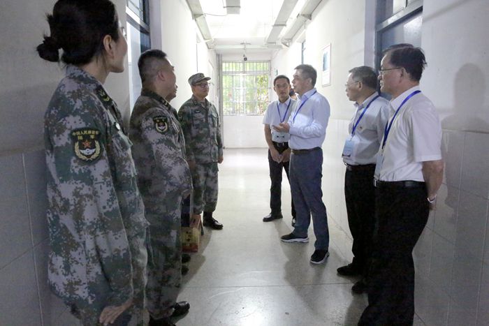 学院领导一行来到军训教官驻地,逐一查看、了解教官的住宿情况并与军训教官亲切交流,详细了解军训教官的集训安排、学生参训、辅导员跟训及饮食、疫情防控和后勤保障等情况。