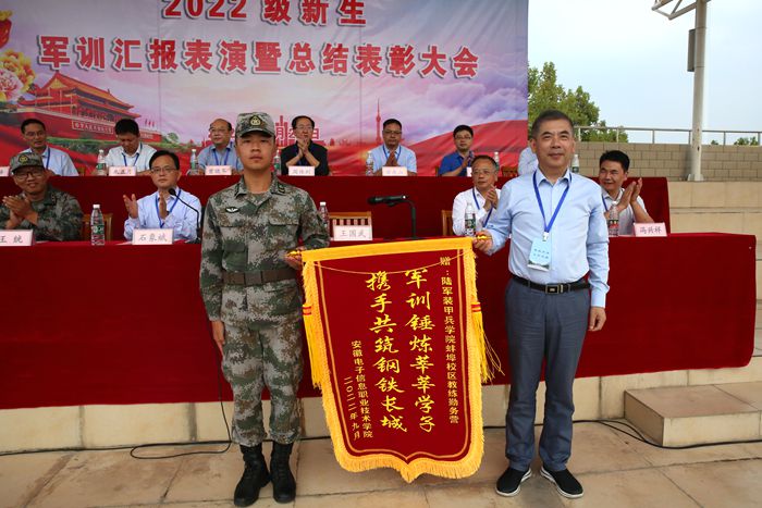 会上,王国武向承训部队赠送锦旗,感谢承训部队对学院新生军训工作的鼎力支持,韩光辉宣读了学院表彰新生军训先进集体和先进个人的决定,表彰军训中涌现出的先进集体和先进个人。机电工程学院王强同学代表军训先进个人在会上发言。(办公室 唐军 审核 王建)