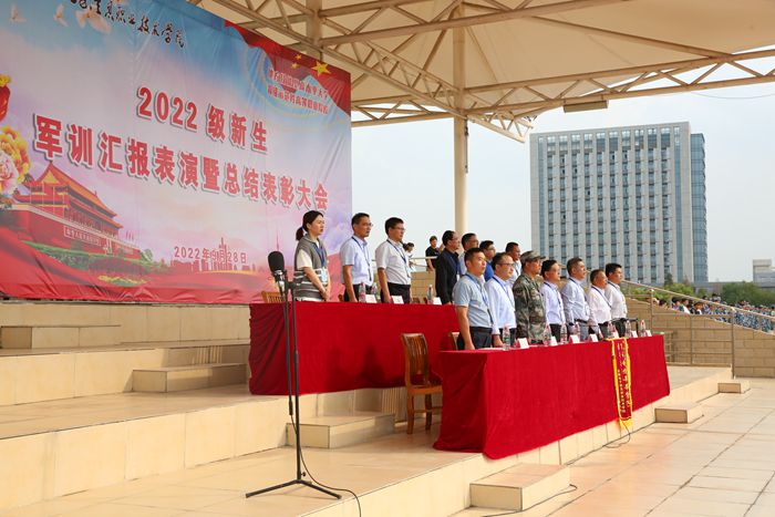 本网讯 口号洪亮、目光坚定、步伐铿锵、斗志昂扬,初秋的艳阳映照着一张张微红的脸庞,9月28日下午,3700多名青春少年齐聚学院西田径场,用汗水与信念见证彼此的成长。15时,在响亮的军歌中,2022级新生军训汇报表演暨总结表彰大会正式拉开帷幕,学院党政领导石象斌、王国武、韩光辉,中国人民解放军陆军装甲兵学院蚌埠校区王统中校,院党委委员闻学、冯兴祥、王建出席大会,相关部门负责人、承训部队教官、新生班级辅导员及2022级新生参加大会。大会由院党委副书记、纪委书记韩光辉主持。