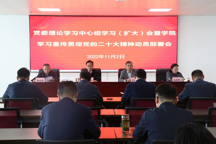 石象斌强调,学习宣传贯彻党的二十大精神要学深悟透,深刻领会“两个结合”“六个坚持”,全面贯彻习近平新时代中国特色社会主义思想;要多措并举,统筹网上网下,聚焦重点要点,通过集中学习、专题研讨等多种形式,广泛开展学习宣讲;要联系实际,明确责任使命,细读深研、细思践悟、细照笃行,把学习党的二十大精神与推动职业教育发展、促进学院更好发展一体贯通;要从严从实,深入推进贯彻落实,全院各级党组织、各部门要加强组织领导,自觉提高政治站位,坚持以上率下、做好远近结合、强化督导检查,确保各项部署要求落实到位。