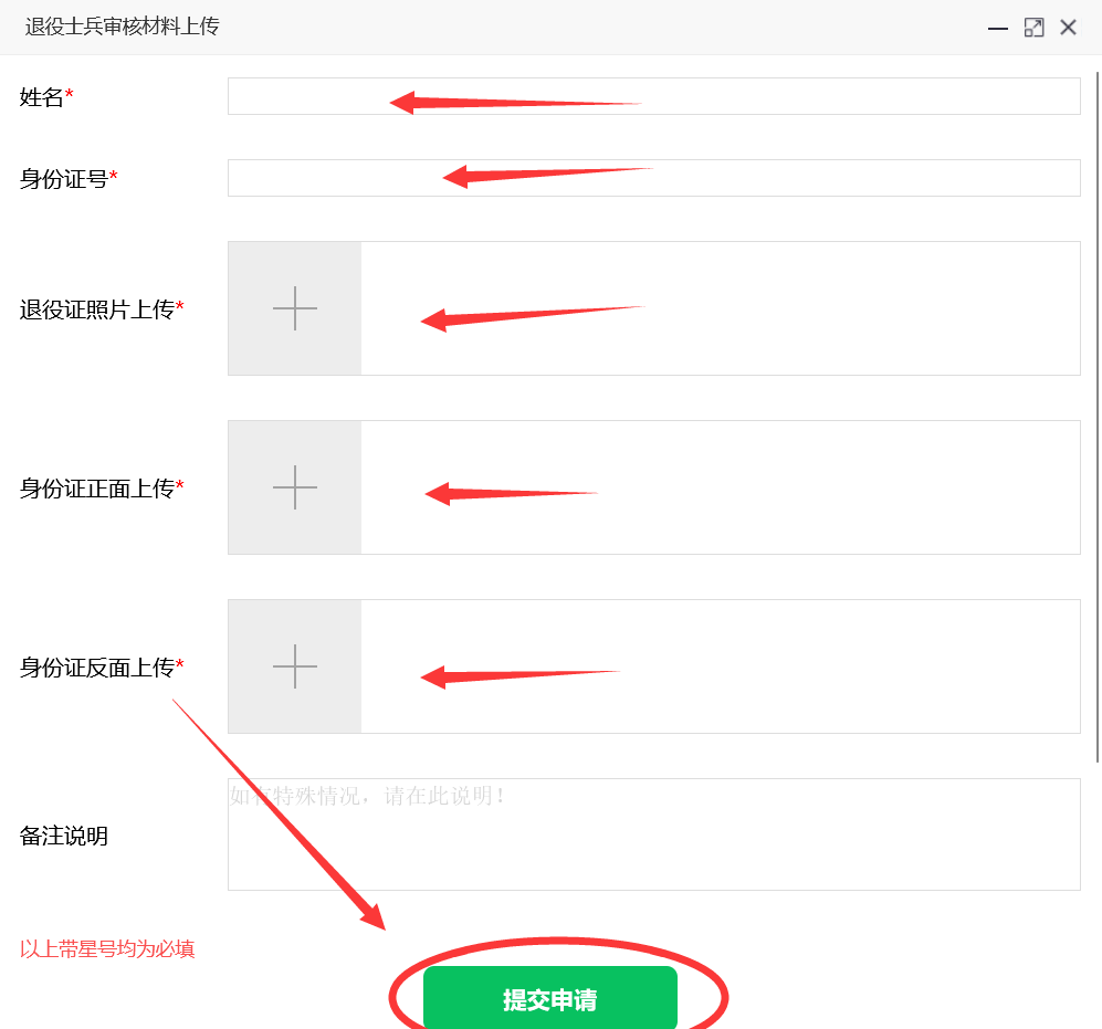 3.阅读和确认应知事项,上传审核材料(身份证号务必准确填写)