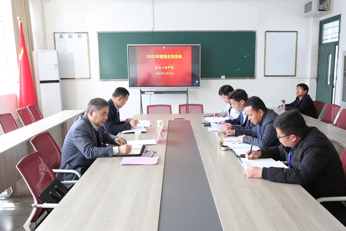 本网讯 3月27日下午,机电工程学院召开2022年度民主生活会。院党委副书记、院长王国武到会指导并点评,党委委员、组织人事处处长聂小明陪同。