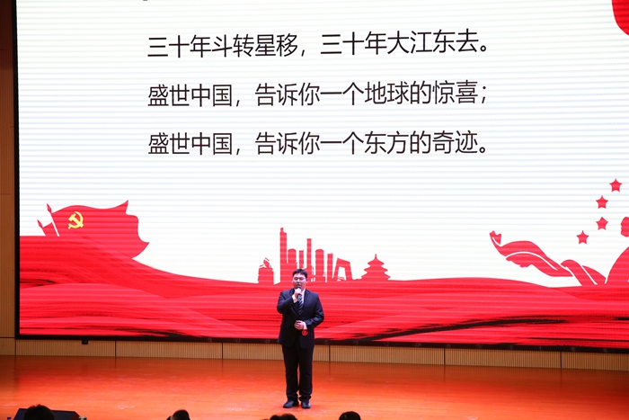 比赛过程中,参赛选手们的朗诵时而铿锵有力,时而悠远绵长,为我们讲述了一个个可歌可泣的感人故事,他们以感人肺腑的话语表达出对党和祖国的真挚情感。
