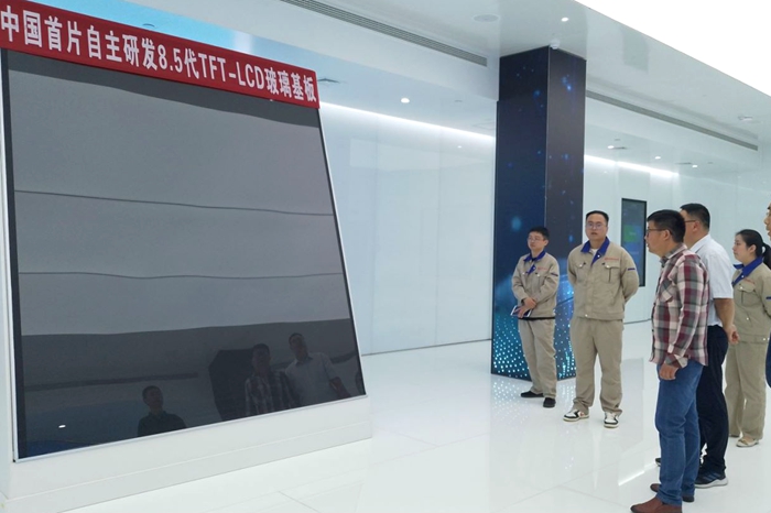 在蚌埠中光电科技有限公司,企业技术和人力资源部门详细介绍了蚌埠中光电科技有限公司的核心技术概况以及与学院的校企合作情况,并邀请我院教师实地参观了中国首片自主研发8.5代TFT-LCD玻璃基板展示中心和生产车间。