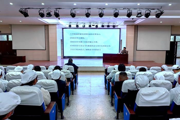 本讯网 4月23日下午,学院2023年度制止餐饮浪费周启动仪式暨食品安全知识培训在信息中心学术报告厅举行。此次培训特邀蚌埠市市场监督管理局餐饮监管科科长乔红艳为授课老师,饮食中心主任李鹏主持会议,食堂和超市全体员工共120余人参加此次培训。