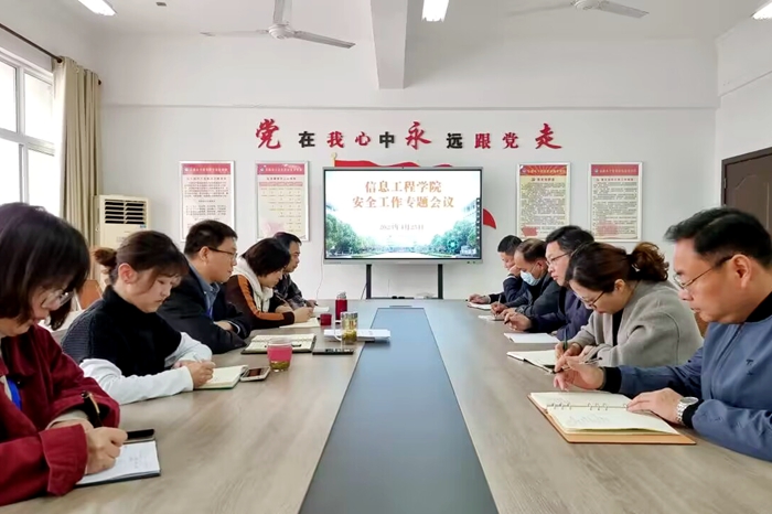 本网讯 为进一步统一思想,明确责任,把校园安全工作抓得更实、更牢、更稳,4月25日中午,信息工程学院在南306会议室召开安全工作专题会议,学习有关文件,传达会议精神,部署安全管理工作。党总支班子全体成员、各教研室主任和专职辅导员参会,会议由党总支书记、院长朱正月主持。