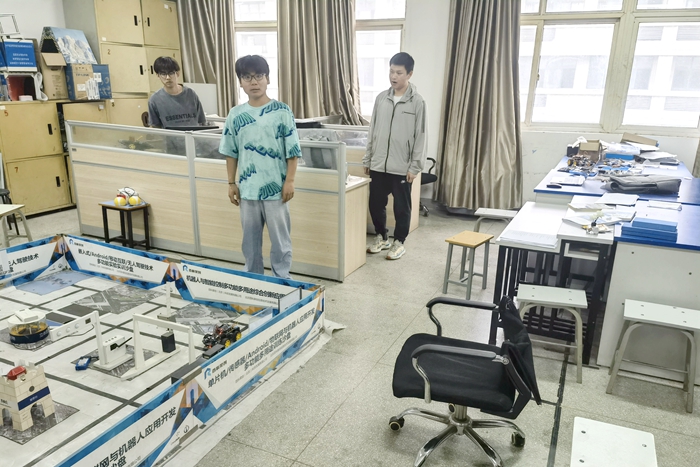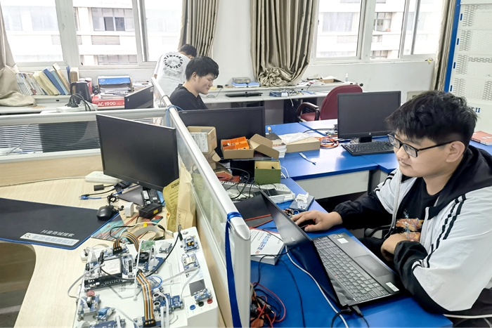 在嵌入式开发创新工作室,老师们借助智能小车、智能机器人等设备,介绍了嵌入式系统的开发环境以及设计方法,让学生们更深入的了解了嵌入式软件和硬件的一般开发环境与开发流程。现场还让工作室的学生展示了如何根据指定的功能要求进行嵌入式开发等操作。