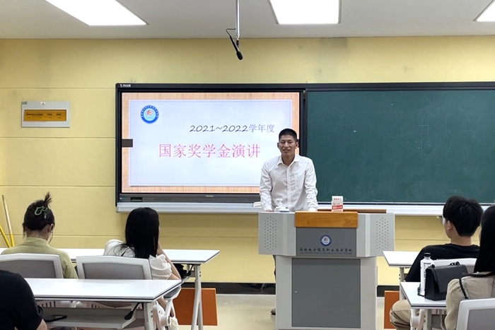 经验分享报告会上,2022年度国家奖学金获得者机器人211班郭威、机电212班余程飞;国家励志奖学金获得者代表机电213班王德才、城轨212班刘雅馨、城轨211班田刘莉,先后登台与现场老师及同学们分享自己砥砺奋斗、成长成才的青春故事,表达了对于国家资助、学校培养的感恩之情,精彩演讲搏得在场同学们阵阵掌声。随后,技能竞赛获奖者代表机器人211班孙杰围绕“以赛促学”,结合自身经历展开经验分享,使同学们受益匪浅。