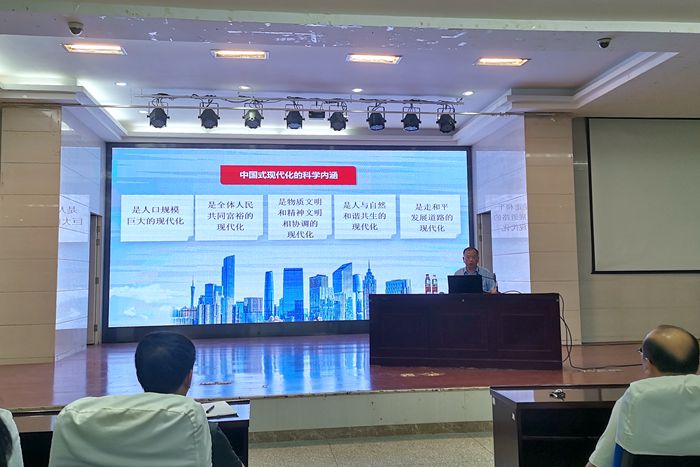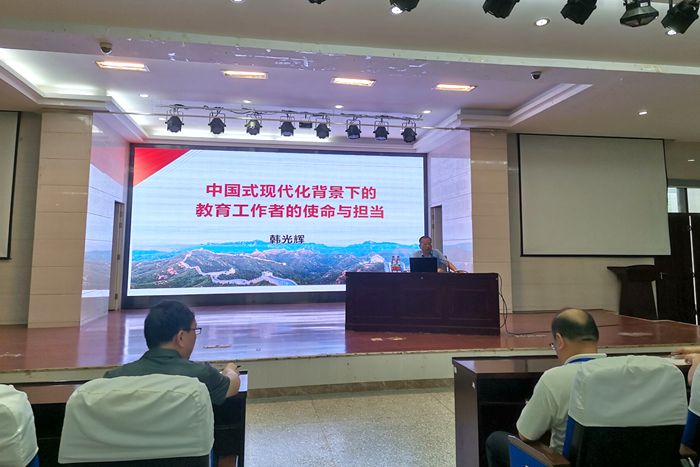 韩光辉围绕“准确把握中国式现代化的科学内涵;深刻认识教育在中国式现代化建设中的重要地位;扛起使命担当,为中国式现代化建设贡献自己的力量”三个问题,与师生党员进行了深入交流。