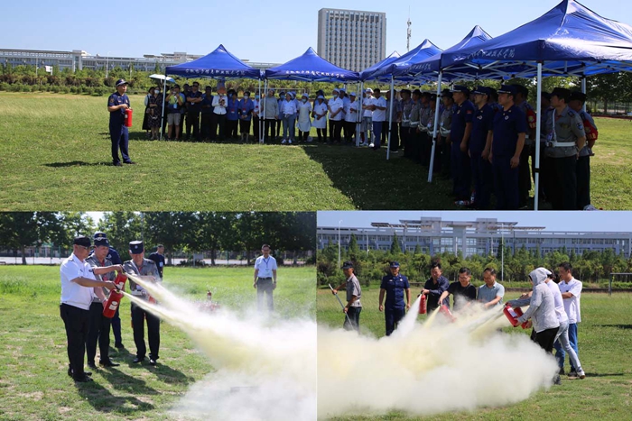 保卫处按照学院的部署,邀请经开区消防应急救援大队专业人员携带专业设备,对食堂、学生公寓、各实验实训室等重点场所的从业人员、管理人员、操作人员及安保人员开展安全教育、消防知识培训和常用消防设备操作技能演练。专业人员现场进行详细讲解、示范演示,在认真学习、详细听讲和仔细观摩后,所有参训人员亲自上手实操。通过培训和演练,使他们能够正确使用灭火器和各类消防器材,进一步提升相关人员的消防“四种能力”和安全意识。