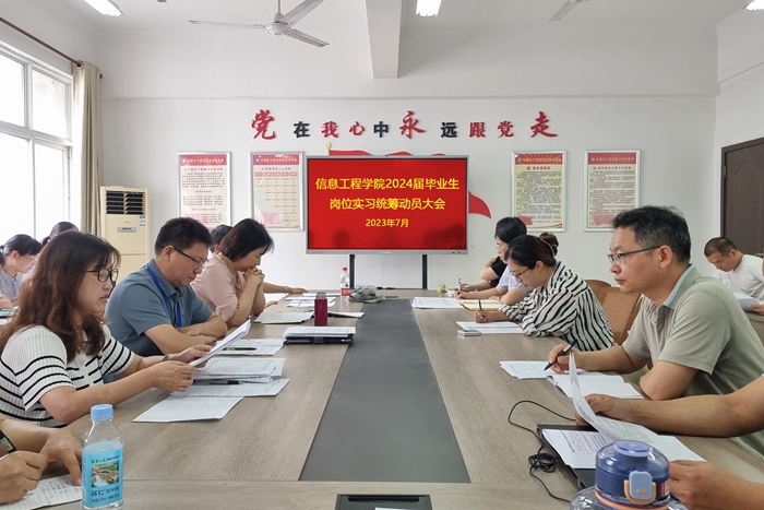 本网讯 岗位实习是职业院校教学工作的重要组成部分,是人才培养方案中的重要组成部分,是学生职业能力形成、职业能力提升的非常关键性实践教学环节,是落实工学交替人才培养模式政策、提高学生职业道德和职业素养的良好途径,使学生形成较强的职业意识和独立胜任岗位工作的职业能力。为做好岗位实习工作,引导毕业生做好职业规划,抢抓就业机遇,为毕业生高质量充分就业奠定良好的工作基础,7月11日下午,信息工程学院在信息中心南306会议室召开2024届毕业生岗位实习工作统筹部署会。学院领导班子、专业带头人、骨干教师、教研室主任和毕业班辅导员参会,会议由党总支书记、院长朱正月主持。