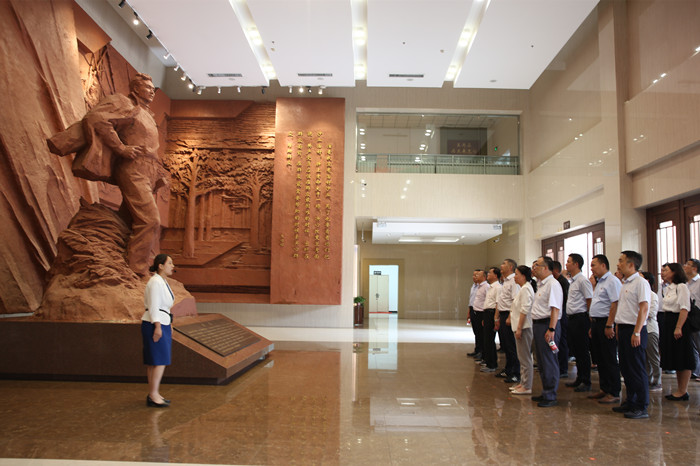 8月18日,在红旗渠纪念馆,党员干部在工作人员讲解下,深入学习习近平总书记2022年10月实地考察红旗渠时重要讲话精神,依次参观了“千年旱魔,世代抗争”“红旗引领,创造奇迹”“英雄人民,太行丰碑”“山河巨变,实现梦想”“继往开来,精神永恒”等展览内容,沉浸式感受了上世纪60年代十万林州人民,在党的领导下,苦战十年,绝壁穿石,挖渠千里,引来漳河水的不认命、不服输、敢于战天斗地的英雄气概和豪迈壮举。看着陈列台上的铁锤、铁耙、掏渣勺、测量仪等物件,聆听着当年众多优秀党员和劳动模范不怕千难万险、对党无限忠诚、对人民事业无私奉献的感人事迹,大家切身体会着“自力更生、艰苦创业、团结协作、无私奉献”的红旗渠精神。