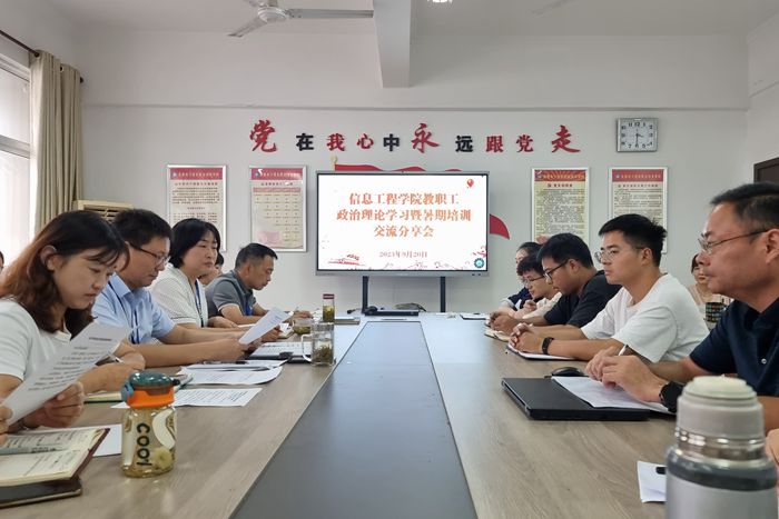 本网讯 德高为范,学高为师,德学双馨,方能为师。为更好地推进高水平教师队伍建设,促进学院各项事业高质量发展,9月20日下午,信息工程学院在南306会议室召开教职工政治理论学习暨教师暑期培训交流分享会,全体教职工参会。会议由党总支书记、院长朱正月主持。