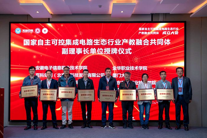 本网讯 10月18日,由中国职业技术教育学会牵头组织,龙芯中科作为龙头企业,联合浙江大学、深圳职业技术大学、中国科学院计算技术研究所共同发起的国家自主可控集成电路生态行业产教融合共同体成立大会在北京举行,我院受邀参会并被授予副理事长单位。龙芯中科技术股份有限公司董事长胡伟武,浙江大学杭州国际科创中心主任、集成电路学院常务副院长杨建义,深圳职业技术大学校长许建领等出席会议。来自全国各地的100多名共同体参与建设单位代表参会,会议由中国职业技术教育学会副会长宋敏主持。