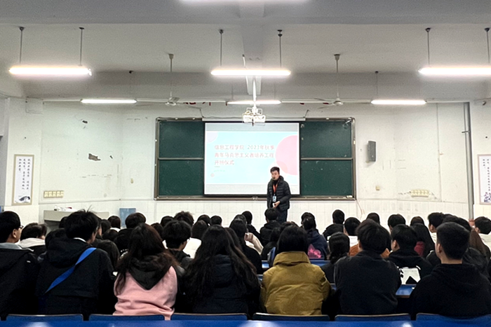 本网讯 为深入学习贯彻习近平新时代中国特色社会主义思想和党的二十大精神,贯彻落实习近平总书记关于青年工作的重要思想,不断加强思想政治引领,服务团员青年成长成才,助力学院人才培养工作高质量发展,11月15日,信息工程学院在1001c举行2023年秋季“青年马克思主义者培养工程”培训班开班仪式。
