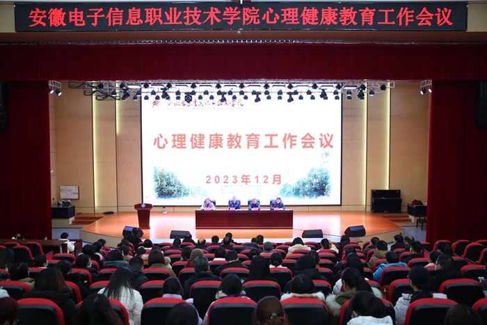 本网讯 为认真贯彻党的二十大精神,深入落实教育部等十七部门印发的《全面加强和改进新时代学生心理健康工作专项行动计划(2023-2025)》和中共安徽省委教育工委、安徽省教育厅等十七部门印发的《全面加强和改进新时代学生心理健康工作的若干举措》等文件精神,传达安徽省学生心理健康工作现场会会议精神,进一步加强学院学生心理健康教育工作,12月15日,学院在实验楼学术报告厅召开心理健康教育工作会议。学院党委书记王国武,党委副书记、纪委书记韩光辉出席会议,党委委员、副院长马莉莉主持会议。相关职能部门、各二级学院党政负责人,心理咨询中心全体教师、全体专兼职辅导员、思政课教师参加会议。