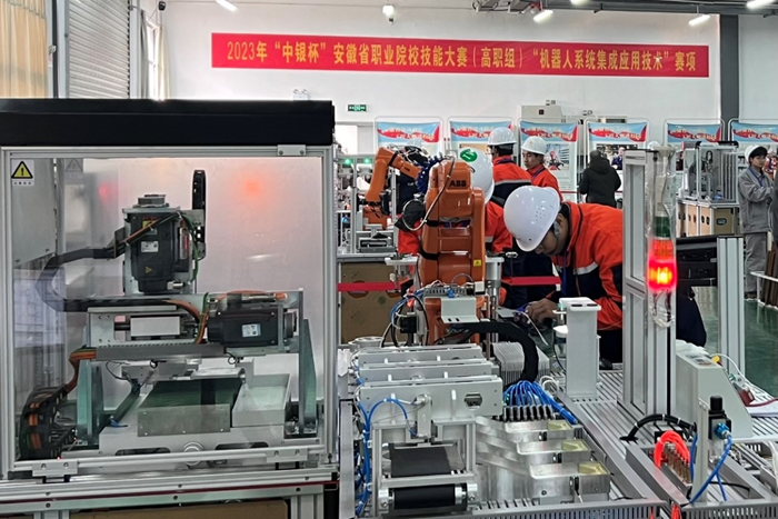 本网讯 12月27日至30日,2023年“中银杯”安徽省职业院校技能大赛高职组“机器人系统集成应用技术”赛项在我院顺利举行。本次大赛由安徽省教育厅、安徽省经济和信息化厅、安徽省人力资源和社会保障厅主办,必赢766net手机版承办,北京华航唯实机器人科技股份有限公司协办。大赛分学生组和教师组,共吸引全省高职院校30支学生代表队和7支教师代表队参加。