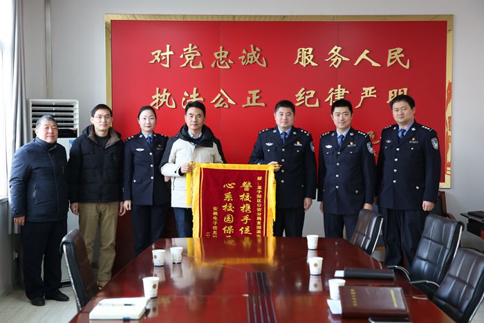 随后,冯兴祥一行又来到龙湖派出所,与龙湖派出所所长黄坤坤等开展亲切交流,冯兴祥代表学院向龙湖派出所干警致以诚挚的节日问候和祝福,对龙湖派出所在保障学院师生人身财产安全、反电信诈骗、反邪教等方面提供的业务支持和管理服务表示感谢,并赠送锦旗。黄坤坤感谢学院对龙湖派出所工作的大力支持,表示将会继续更好维护大学城的社会秩序,持续为学院师生提供高质量服务。(保卫处 王钊 审核 陈德峰)