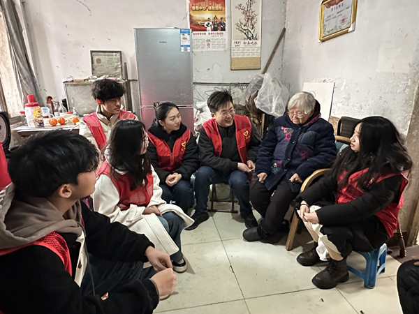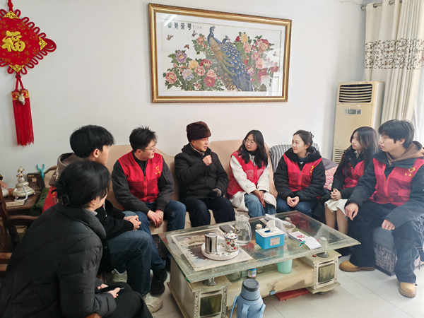 学院志愿服务队首先走访慰问了职素仙和宋良义两位空巢老党员。志愿者积极帮助爷爷奶奶打扫家庭卫生。宋爷爷,党龄49年,与志愿者们热情地分享了自己参加工作、发挥党员作用的宝贵经历和心得感悟,并表示虽然离开了工作岗位但仍不忘初心,牢记共产党员的使命,为身边群众奉献余力。志愿者们认真聆听、收获良多,纷纷表示“作为共青团员,要继续传承弘扬他们的优良作风和革命传统,永远跟党走,为人民服务。”志愿者们叮嘱爷爷奶奶“天冷多注意保暖,保重身体,如果生活上遇到困难,可通过社区联系学校志愿者,我们要发挥团员青年的力量,为爷爷奶奶做些力所能及的事情。”