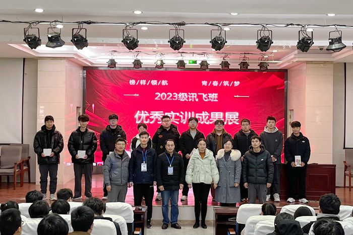 本网讯 近日,为期一周的2023级“科大讯飞班”C语言实训圆满结束,为展示同学们的实训成果,鼓励先进,树立典型,营造浓厚的学习氛围,软件工程学院在信息中心学术报告厅举行优秀实训成果展,软件工程学院院长夏克付出席活动,软件技术教研室主任胡六四、部分软件技术专业教师与讯飞工程师,以及全体2023级“科大讯飞班”同学参加活动。活动由软件技术专业教师徐鹏成主持。