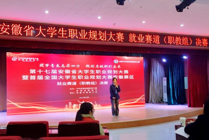 本网讯 近日,第十七届安徽省大学生职业规划大赛暨首届全国大学生职业规划大赛(安徽赛区)就业赛道总决赛在安徽中医药大学成功举办。我院郭蕊同学荣获就业赛道二等奖。