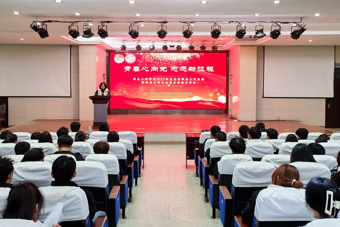 本网讯 为发挥志愿服务的引领作用,展现大学生志愿者励志奉献的青春风采,近日,信息工程学院2023年度志愿服务工作表彰暨优秀大学生志愿者经验分享会在信息中心学术报告厅举行,党总支副书记张曌、团委负责人韦鹏程以及300余名大学生志愿者参加活动。