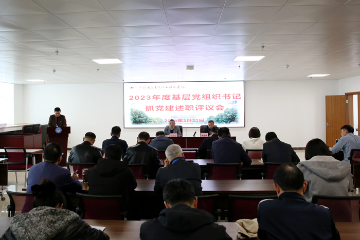 本网讯 3月22日,学院2023年度基层党组织书记抓党建工作述职评议大会在实验楼12楼会议室召开,党委书记王国武主持会议并作点评讲话,党委副书记、纪委书记韩光辉出席会议,其他党委委员和各党总支、党支部委员及党员代表参加会议。
