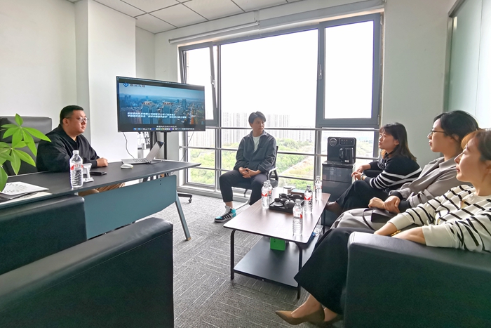 在蚌埠大数据网络传媒有限公司,胡北辰向企业介绍了学院的专业设置、岗位实习、校企合作等情况。蚌埠大数据网络传媒有限公司董事长朱冬云介绍了企业的发展历程、业务聚焦、公司核心价值观、运营模式及发展成果等情况,重点交流了互联网+信息技术发展面临的机遇与挑战。双方在校企合作、产教融合、协同育人等方面交换了意见,并达成共识。