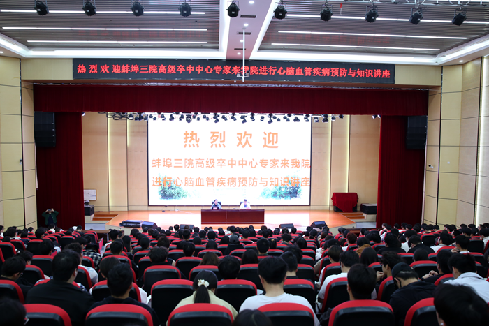 本网讯 4月17日,在实验楼报告厅,学院邀请蚌埠三院卒中中心副主任叶斌为学院师生开展心脑血管疾病预防与急救知识科普宣讲活动。本次宣讲活动由学院与蚌埠三院高级卒中中心联合举办。学院党委委员、工会主席冯兴祥参加并主持。