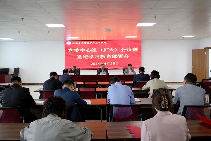 会议指出,开展党纪学习教育,是今年党建工作的一项重要政治任务,是加强党的纪律建设、推动全面从严治党向纵深发展的重要举措。我们要提高政治站位,充分认识到开展党纪学习教育的重大意义,坚定拥护“两个确立”、坚决做到“两个维护”,切实把思想和行动统一到党中央决策部署和省委工作要求上来。我们要严格落实中央和省委部署,省工信厅党组、省委教育工委的工作安排,紧密结合学院实际,高标准高质量开展党纪学习教育,为“双高校”建设创造良好的政治生态和校园环境。