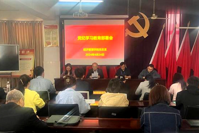 本网讯 4月24日下午,经济管理学院召开党纪学习教育部署会,深入学习习近平总书记关于党纪学习教育的重要讲话和重要指示精神,中共中央办公厅《关于在全党开展党纪学习教育的通知》和学院党纪学习教育部署会精神,对经济管理学院党纪学习教育工作进行具体部署。经济管理学院党政领导班子成员,全体党员参加会议。