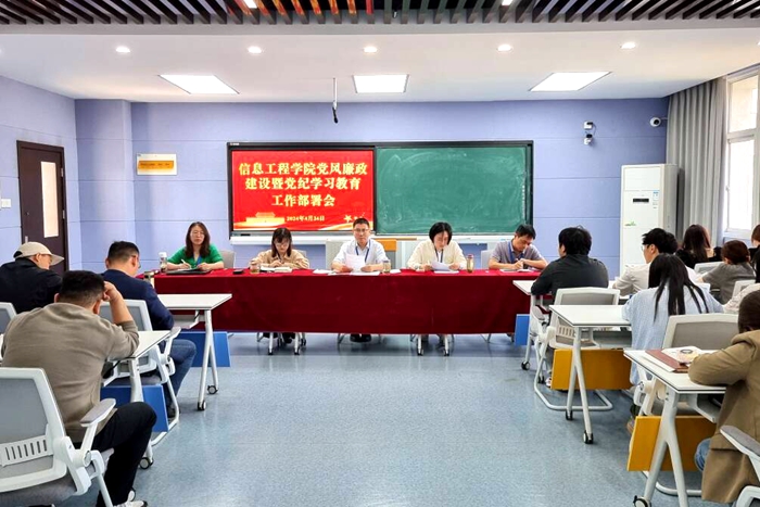 本网讯 为进一步贯彻落实好学院2024年度党的建设暨党风廉政建设工作会和党纪学习教育部署会精神,持续推进党风廉政建设工作,扎实开展党纪学习教育,4月24日下午,信息工程学院党总支开展主题党日活动,召开党风廉政建设暨党纪学习教育工作部署会,学院党总支班子全体成员、全体师生党员、师生入党积极分子共计76人参会,会议由党总支书记、院长朱正月主持。