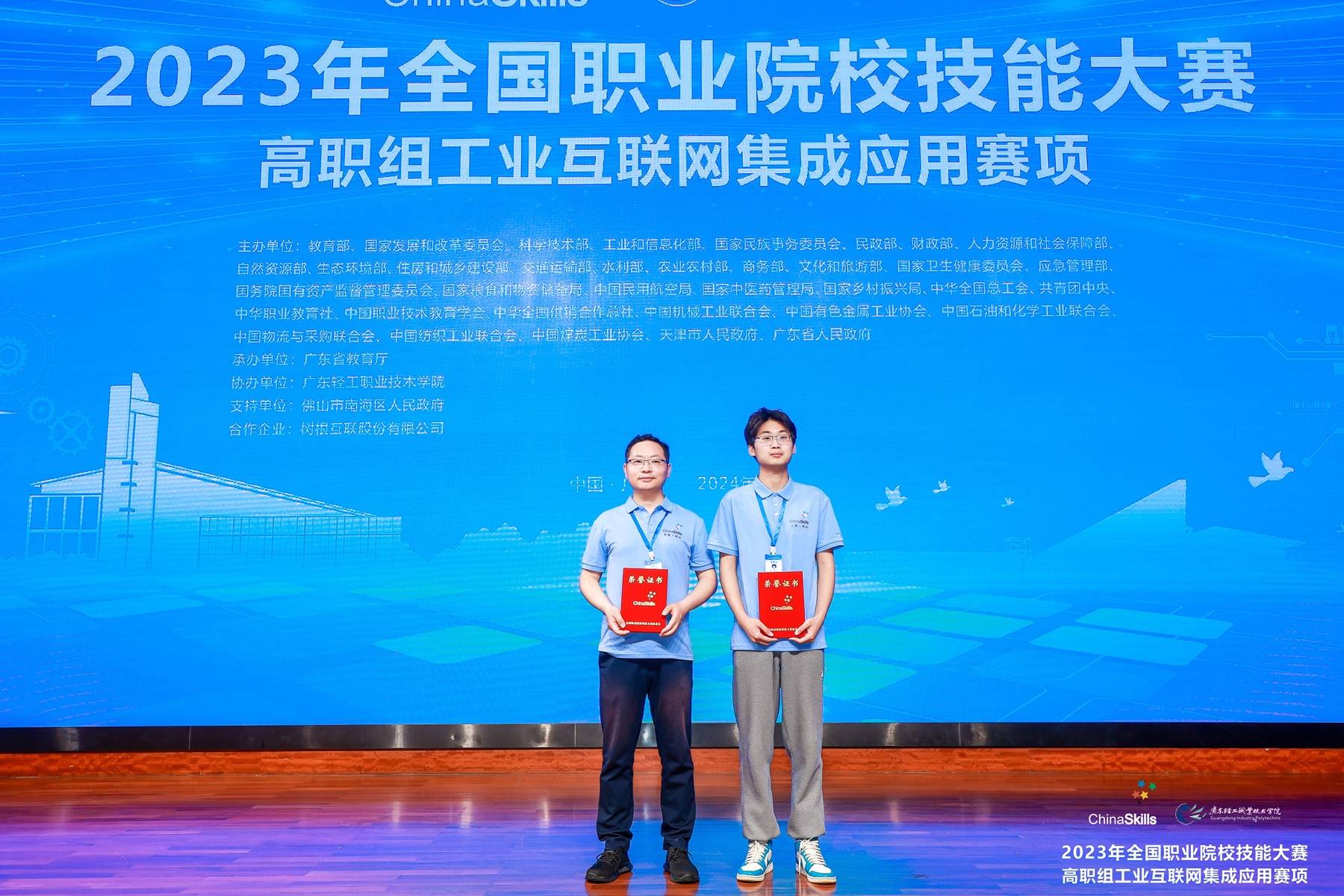 本网讯 5月28日至31日,2023年全国职业院校技能大赛高职组“工业互联网集成应用”赛项(师生同赛)在广东轻工职业技术学院举行,来自全国各职业院校的54支代表队同台竞技,切磋技艺。经过两天的激烈角逐,由信息工程学院教师王锦、云计算221班学生丁龙杰组成的师生参赛团队荣获二等奖。