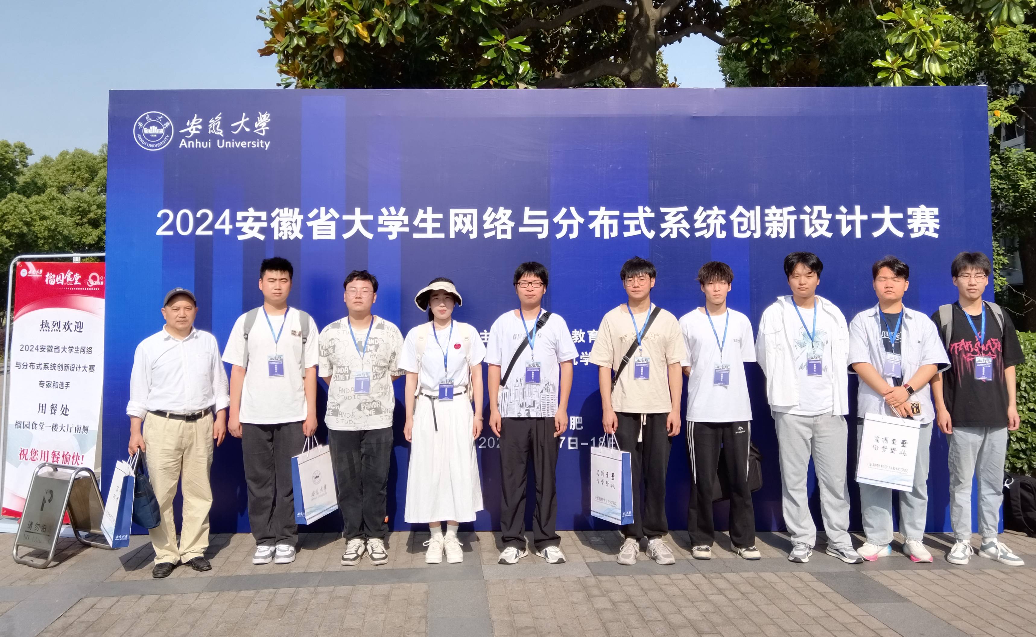 本网讯 近日,由安徽省教育厅主办,安徽大学、安徽省计算机学会、安徽省电子学会承办的2024安徽省大学生网络与分布式系统创新设计大赛在安徽大学隆重举行。我院大数据团队组成的3支代表队在“大数据应用”技能赛中凭借出色表现,全部获得一等奖。