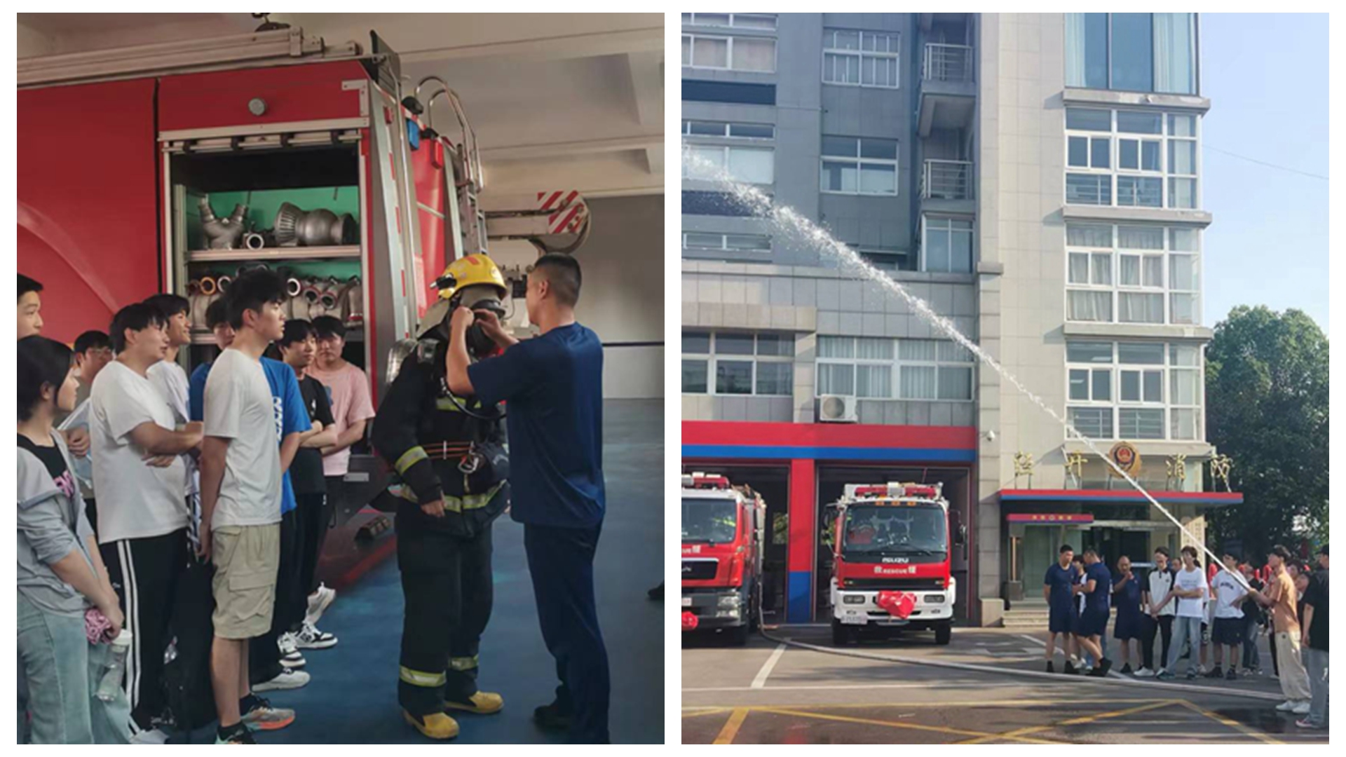 在体验环节,同学们通过学穿沉甸甸的防火服、攀登消防车、操纵救援电锯、架设高压喷水枪等设备感受到消防工作的艰难和消防员的不易。整个过程讲的细致、听的入神、做的认真,记的清楚,让同学们上了一堂生动、有趣的消防安全体验课。