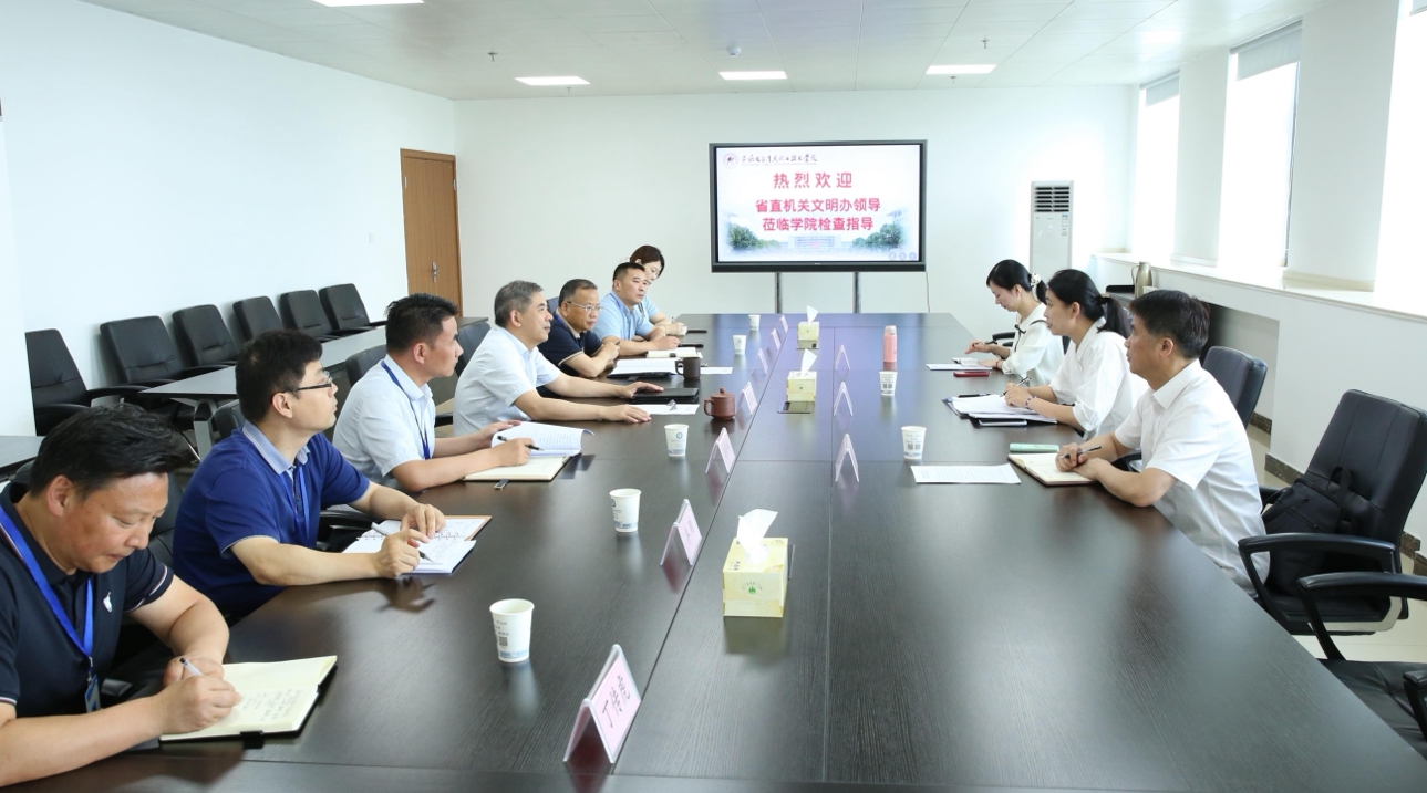 本网讯 6月20日,省直机关文明办副主任王晓蕾,省工业和信息化厅机关党委二级调研员葛成忠,省直机关文明办四级调研员朱悠南一行来院开展文明校园创建工作调研,院党委书记王国武,党委副书记、纪委书记韩光辉,副院长冯兴祥出席调研,相关处室负责人陪同调研。