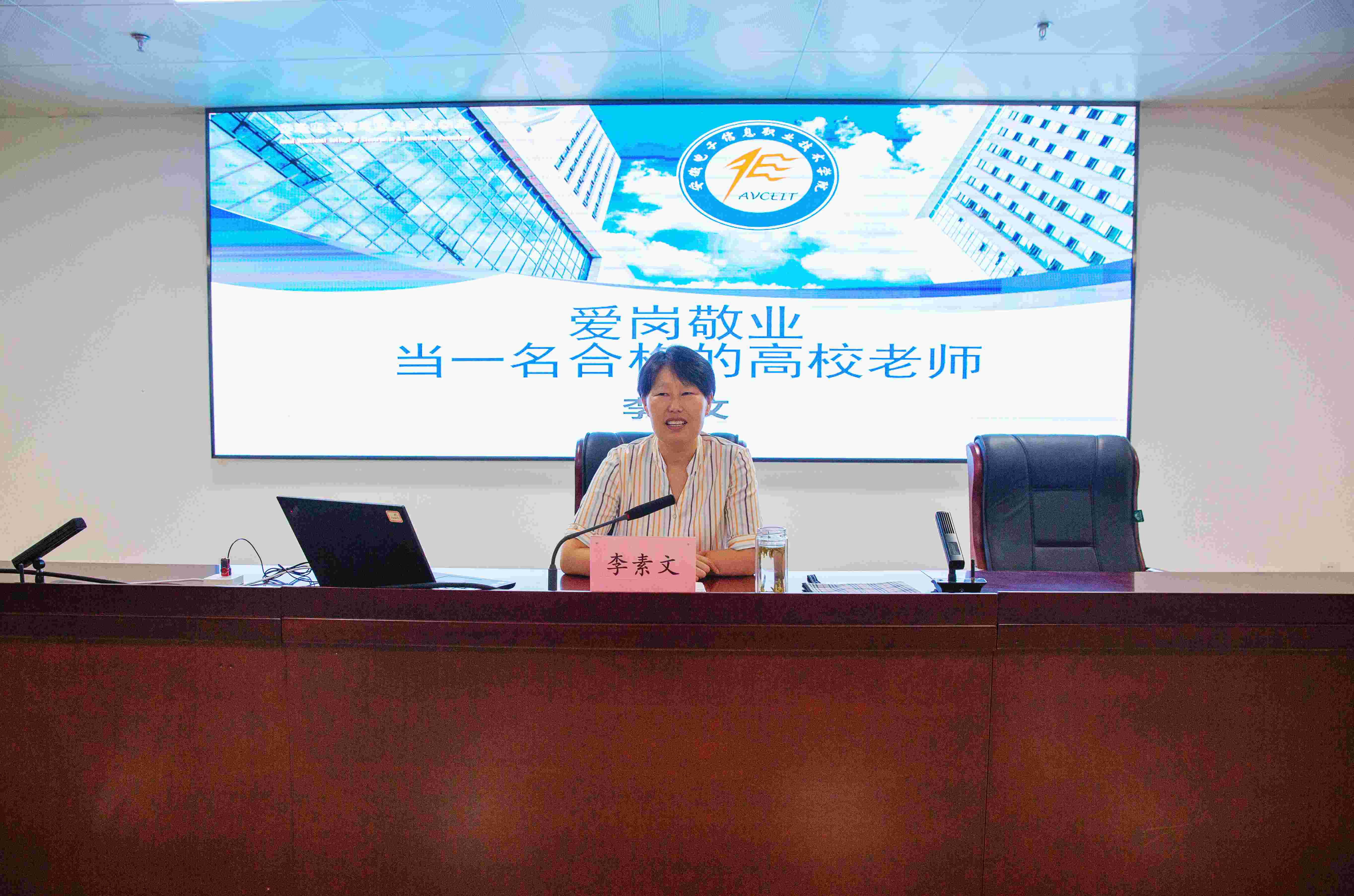 李素文以《爱岗敬业,当一名合格的高校教师》为题,深入分析合格高校教师应具有的基本素养,详细阐述站稳课堂和科教融汇的路径要求,并从一名“新电院人”的视角,回顾总结近年来学院办学成果和经验,激励青年教师要主动拉高标杆,提高精气神,接好“接力棒”,在推动学院高质量发展中成就更好的自己。
