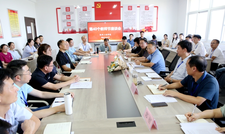 本网讯 躬耕教坛,手揽星光,培育时代新人。教师节前夕,为倾听教师心声,凝聚发展合力,推动学院高质量发展,学院党委书记王国武,院长李素文,党委副书记韩光辉,副院长闻学,副院长冯兴祥,纪委书记蔡学良一行分赴各二级学院开展教师节座谈会,各二级学院党政领导班子及全体教师参加会议。