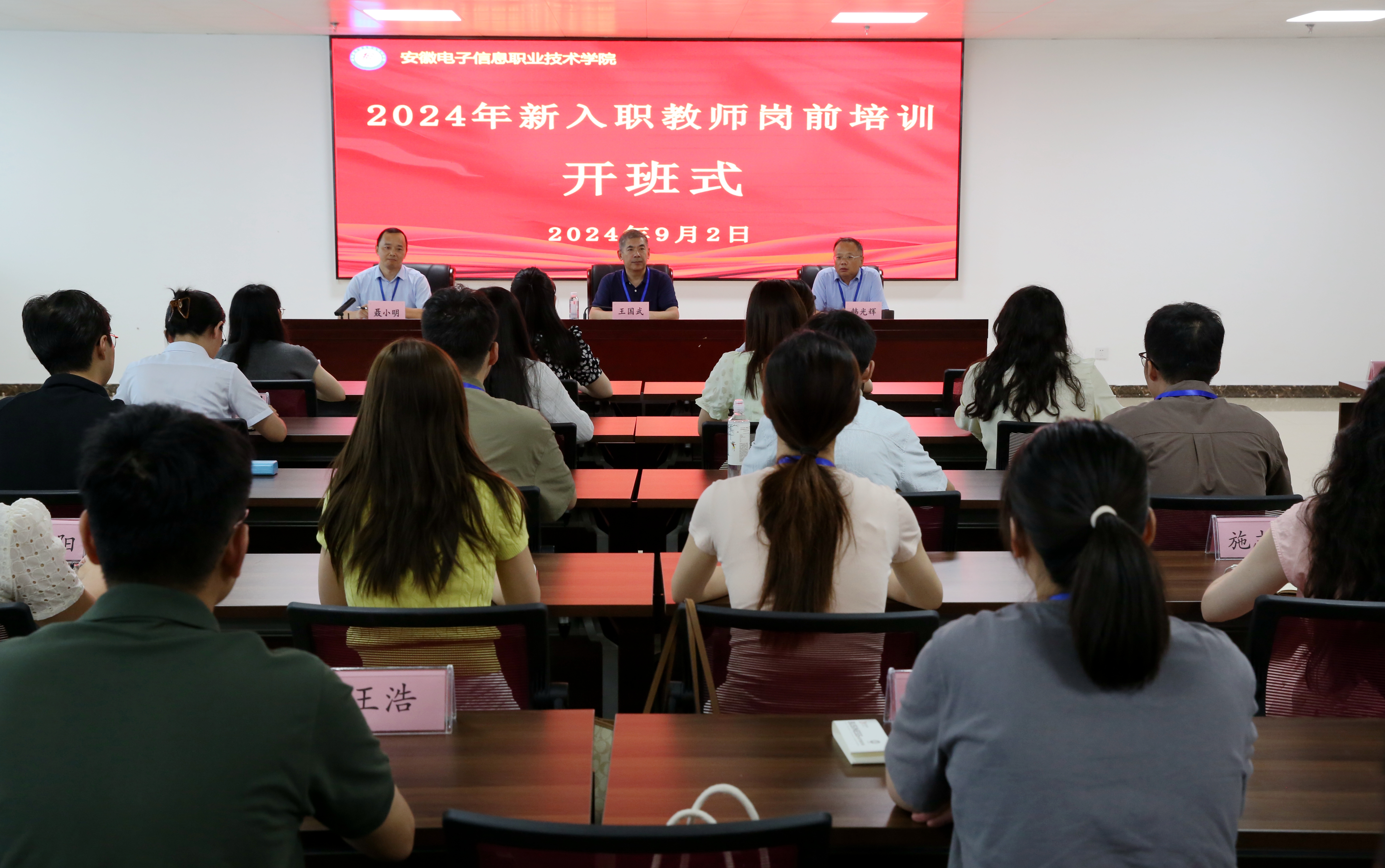 9月2日,王国武在开班致辞中首先表示对新入职教师的热烈欢迎,领学了《求是》杂志9月1日出版发表的习近平总书记重要文章《培养德智体美劳全面发展的社会主义建设者和接班人》,并作《弘扬教育家精神,推动学院高质量发展》主题报告。他强调,新入职教师要深刻理解习近平总书记关于教师工作重要论述,全面把握教育家精神的丰富内涵,深刻认识新时代职业教育发展形势,大力弘扬教育家精神,坚定政治立场,科学制定职业目标,锤炼过硬本领,在学院高质量发展中建功立业。