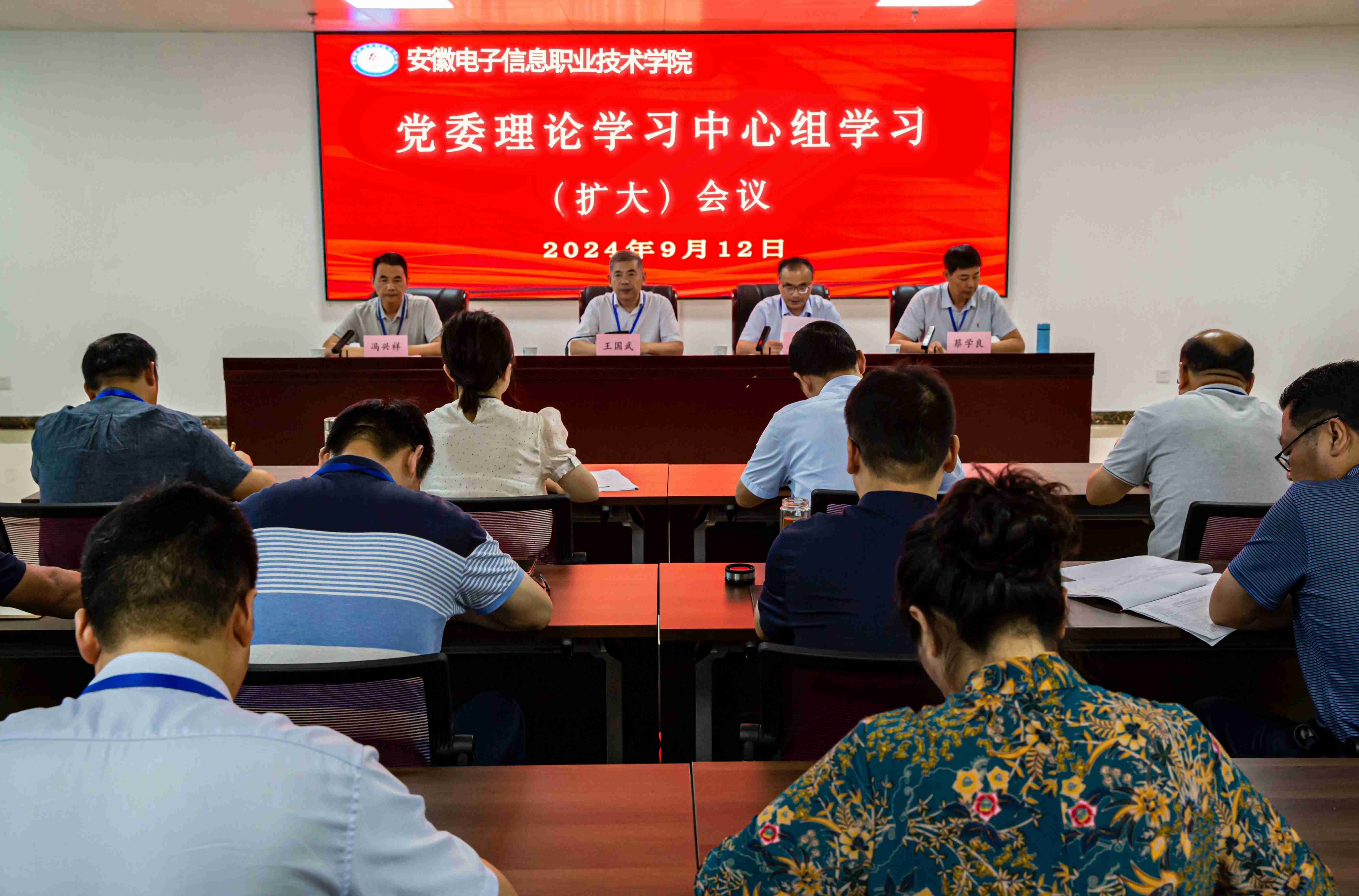 本网讯        为深入学习贯彻党的二十届三中全会精神,9月12日,学院在实验楼12楼召开党委理论学习中心组(扩大)学习会。学院党委书记王国武主持会议并讲话,党委委员、副院长闻学,党委委员、副院长冯兴祥,党委委员、纪委书记蔡学良和学院中层管理人员出席会议。
