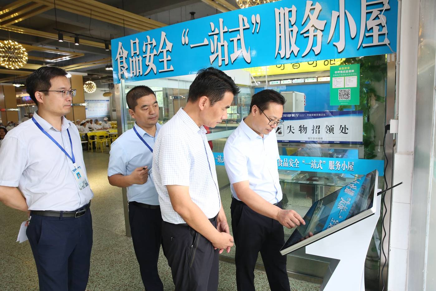 揭牌活动中,与会人员现场观摩了食品安全“一站式”服务小屋和“学院食品安全主体责任落实信息平台”使用情况。(文:李鹏 图:唐军 预审:丁传虎 审核:王建)