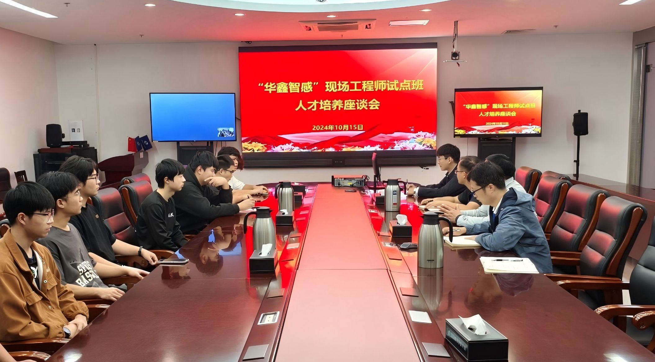 本网讯 为深入推进现场工程师试点“华鑫智感” 班和“华鑫微纳”班的人才培养工作,10月15日上午,电子工程学院党总支书记、院长方庆山带队前往安徽北方微电子研究院集团有限公司,看望正在企业跟岗实习的试点班学生,并同学生代表们进行座谈交流。安徽北方微电子研究院集团有限公司人力资源部校企联合培养专干王文海、电子工程学院副院长李征及相关专业骨干教师参加。
