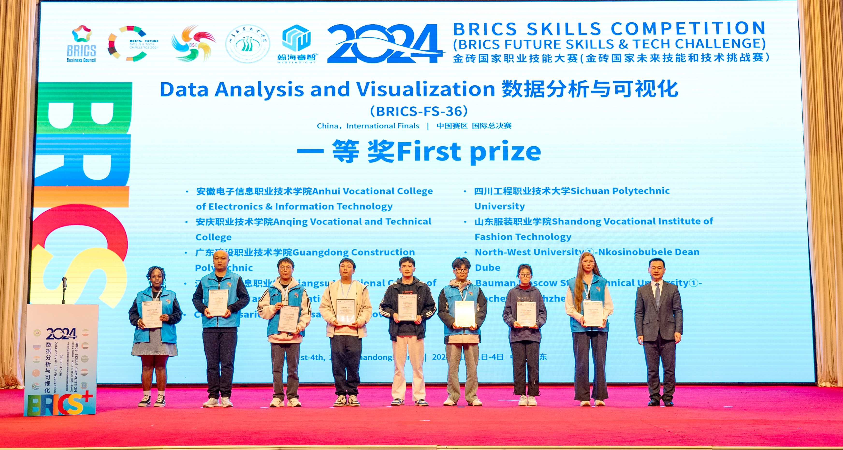 本网讯 11月4日,2024金砖国家职业技能大赛“数据分析与可视化”赛项国际总决赛在山东泰安落下帷幕。学院大数据团队徐洋同学以总分第三名的优异成绩在112支外籍参赛队和62支国内参赛队中脱颖而出,勇夺铜牌并荣获国际赛一等奖,指导老师陈俊生获评“优秀指导专家”。