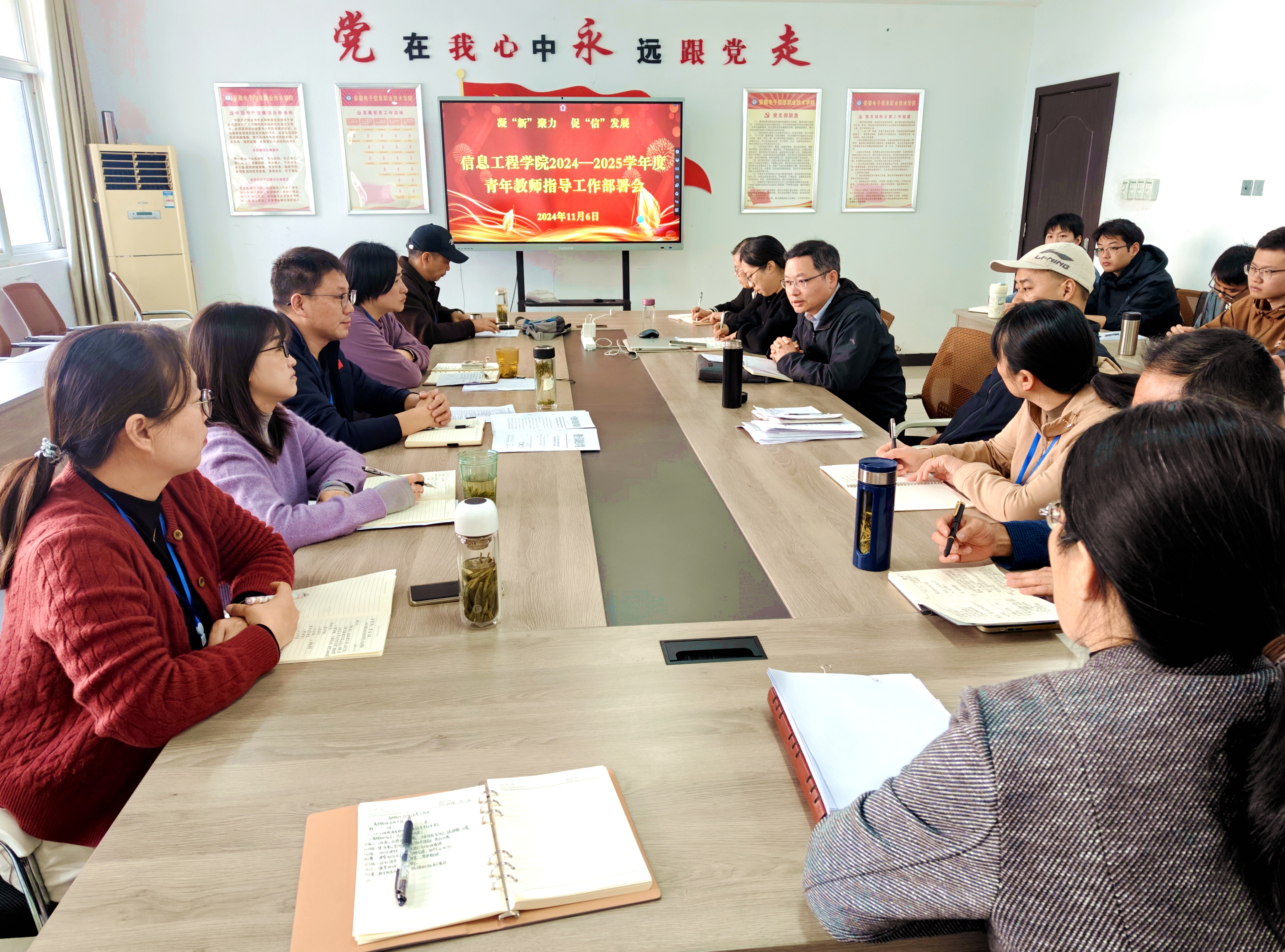 本网讯 为进一步落实青年教师导师制,推动青年教师队伍建设高质量发展,11月6日下午,信息工程学院在信息中心南306会议室召开2024年青年教师指导培养工作部署会,学院党政班子全体成员、各教研室主任、全体指导教师和青年教师参会。会议由党总支书记、院长朱正月主持。