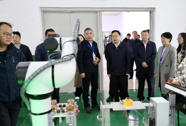 调研中,李中深入学院虚拟现实实训中心、人工智能实训室、科大讯飞工程中心、凯盛工程智能制造中心等地,了解学院专业人才培养、产教融合、校企合作等情况。