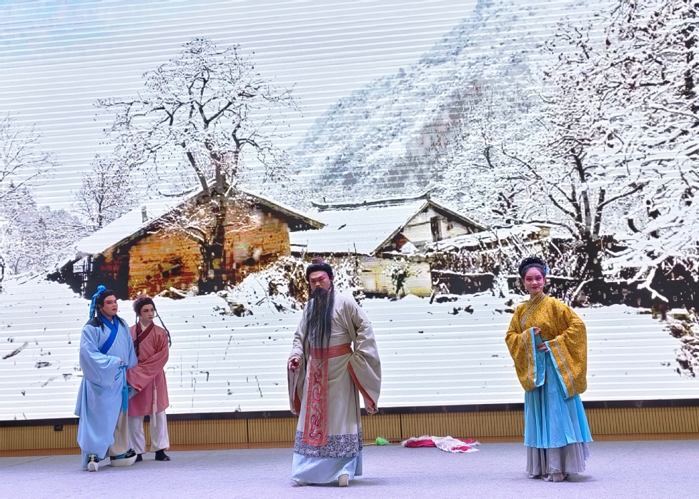 泗州戏,原名拉魂腔,距今已有200多年的历史,是安徽省淮河两岸地区地方传统戏剧。本次演出内容为《吕布与貂蝉·小宴》《鞭打芦花》《挂画》等经典曲目,演员们精湛的演技让师生们近距离感受到传统戏曲的无穷魅力。在互动环节,刘莉团长向同学们示范并教授了古代问候礼仪,普及戏曲知识,同学们学得认真,听得入神。