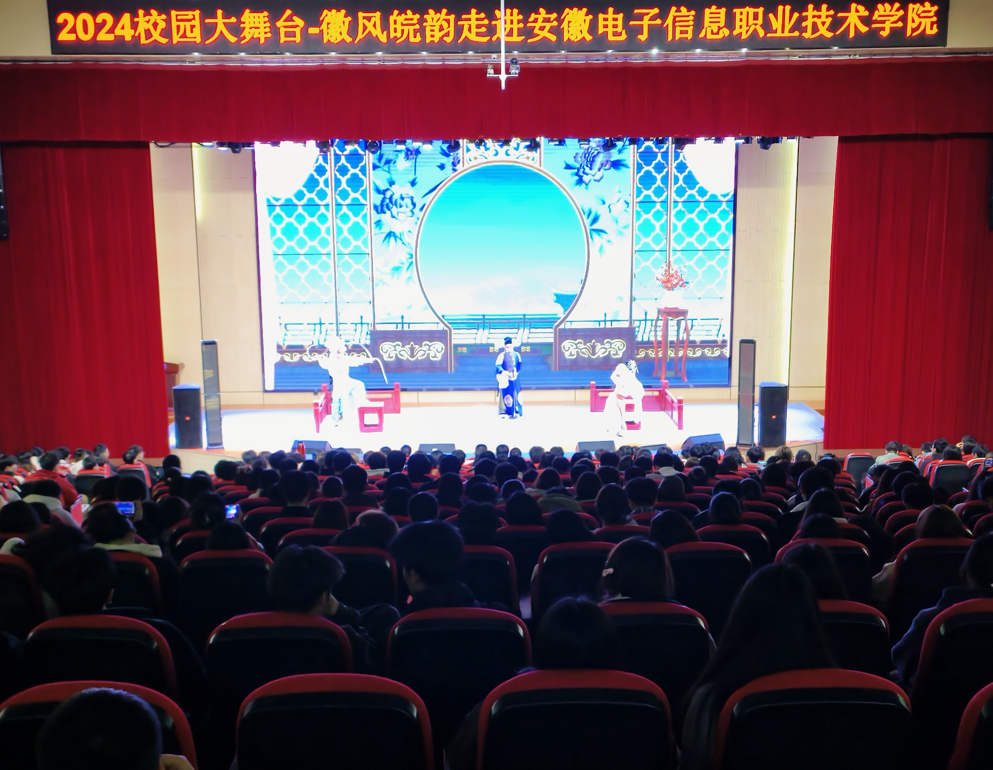 本网讯 为传承和弘扬中华优秀传统文化,丰富学生校园文化生活,近日,由省委宣传部、省教育厅、省文旅厅主办的2024年“校园大舞台——徽风皖韵进高校”活动在学院实验楼报告厅举行。来自宿州市泗州戏剧团的戏曲演员们为学院师生们带来了精彩纷呈的泗州戏演出。院党委委员、纪委书记蔡学良出席活动,500余名师生观看演出。